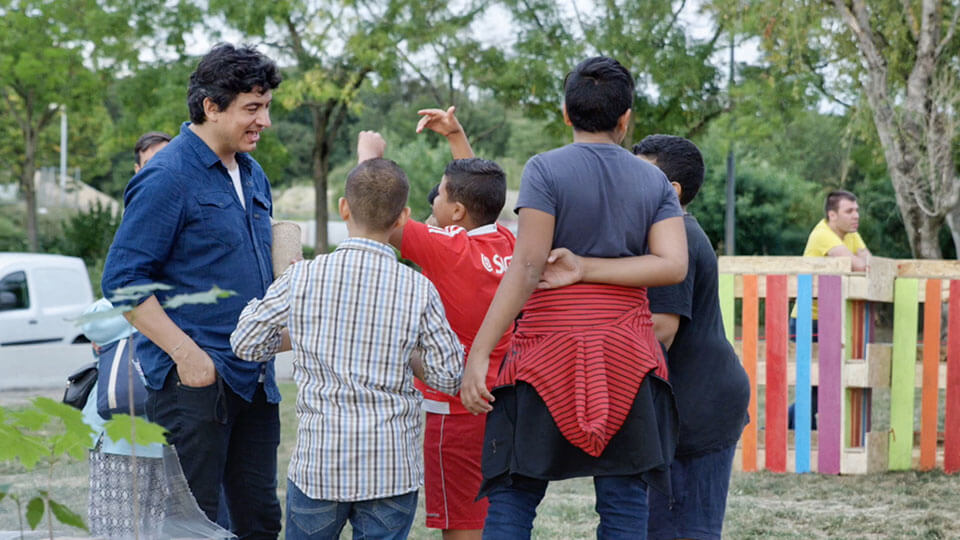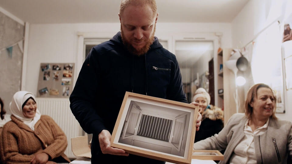 Nous avons suivi durant plusieurs mois les équipes : artistes, médiateurs, chantier d’insertion de monteurs, afin de retranscrire dans un reportage long, l’expérience Veduta.